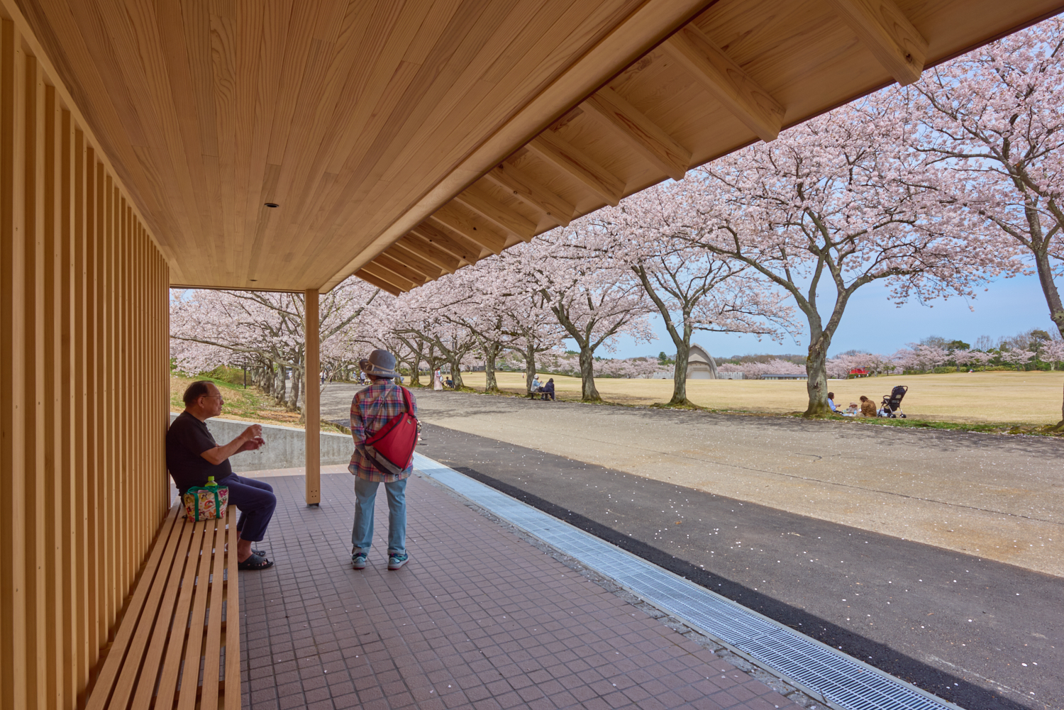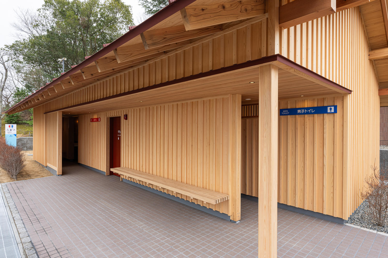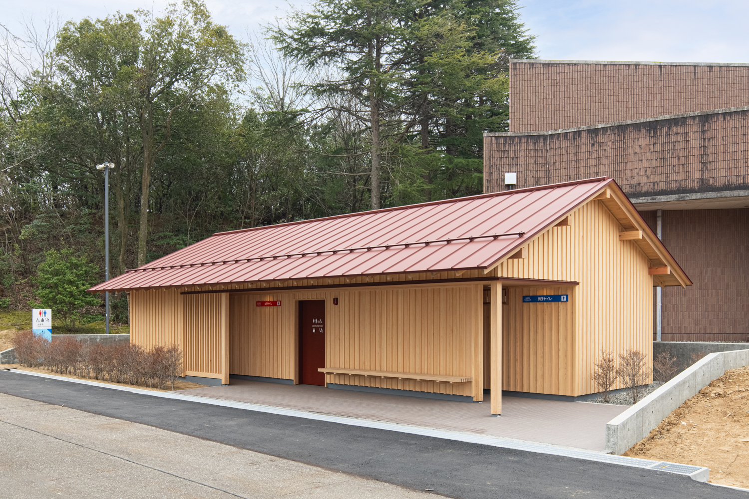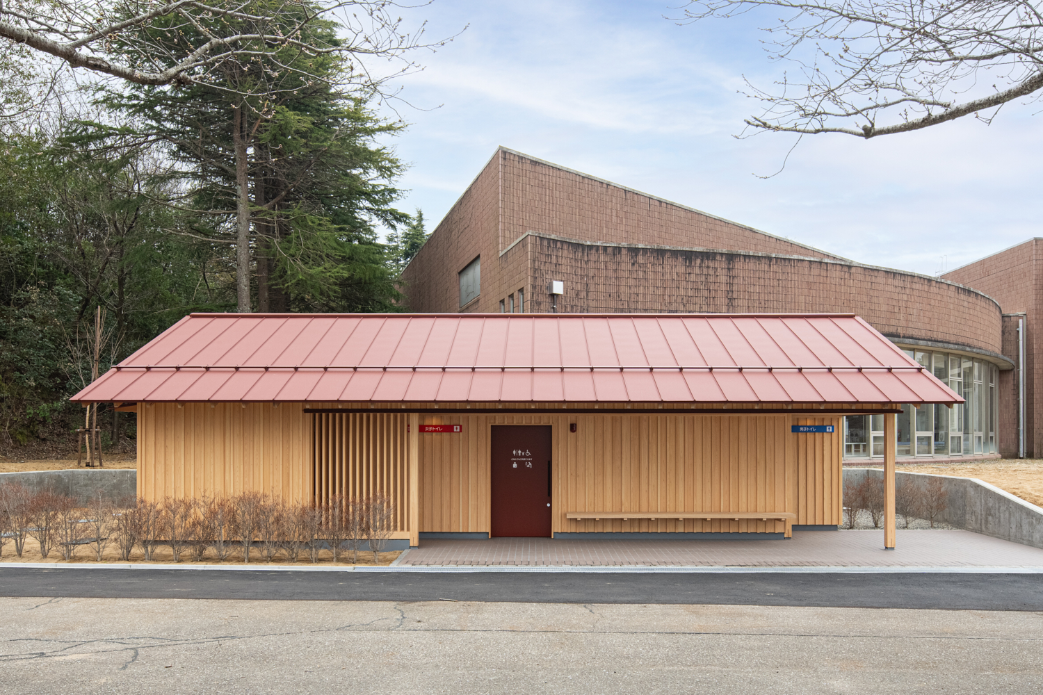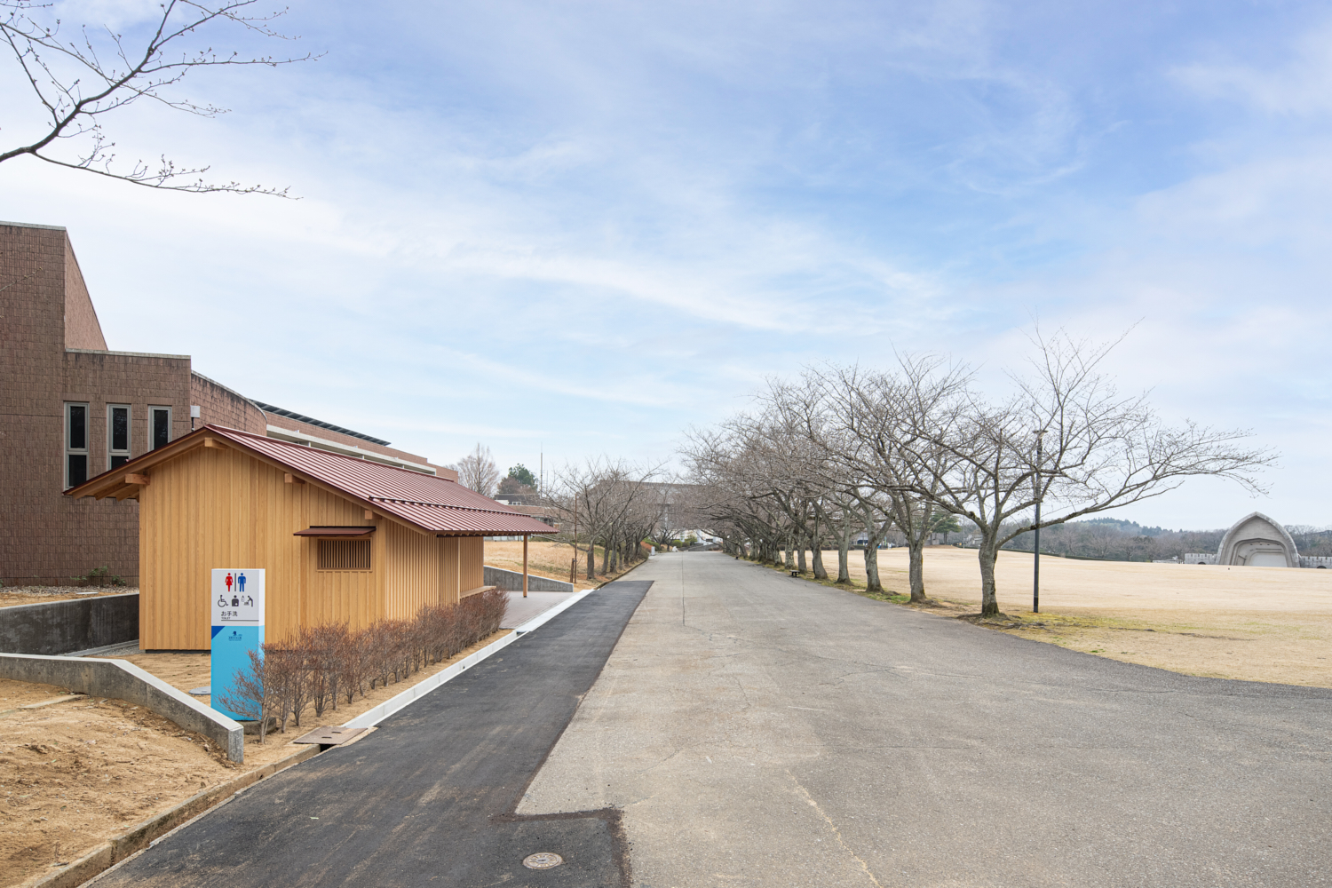 市民に愛される公園。大きな芝生広間には多くの人が訪れる。その人達のためのトイレと小さな居場所。