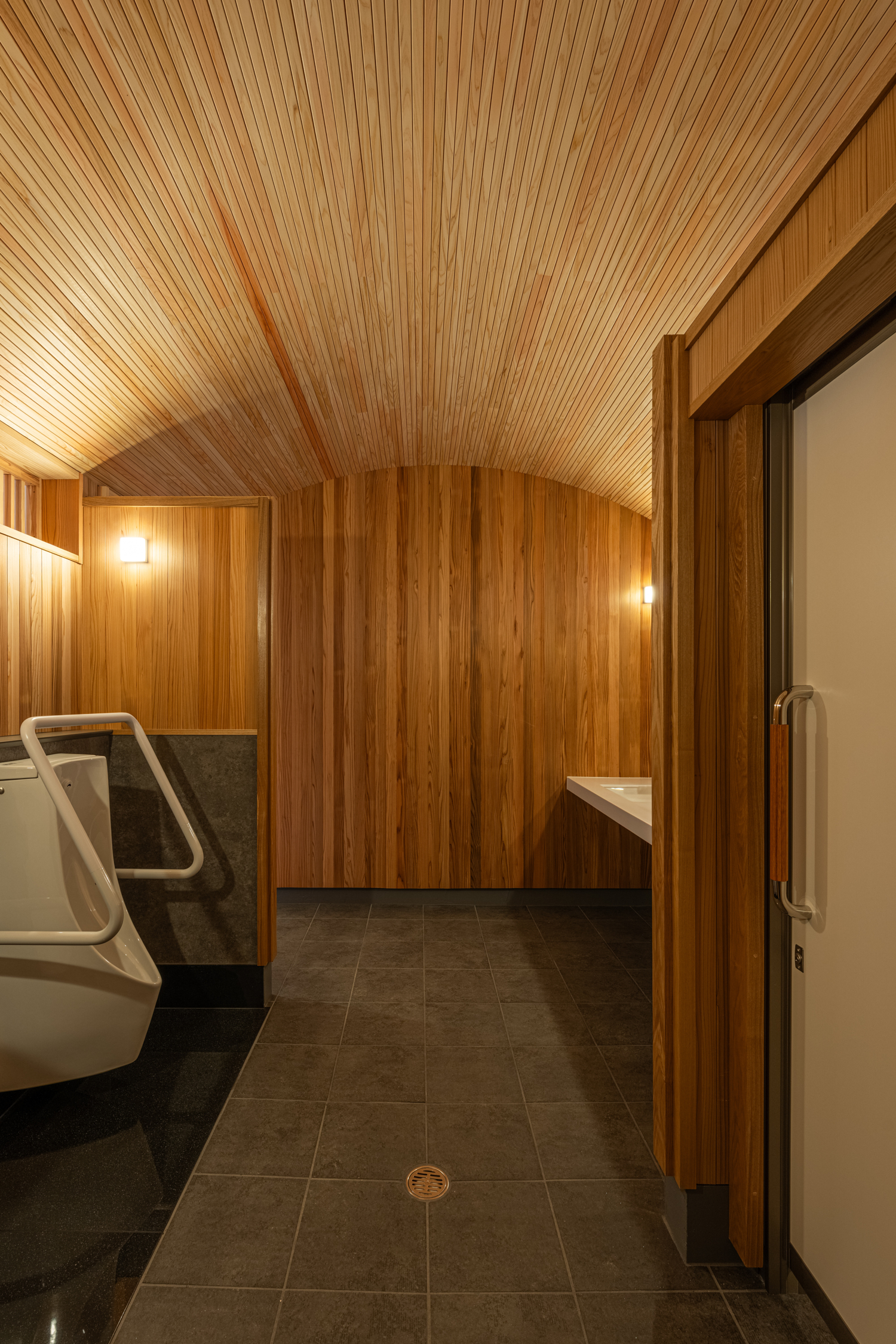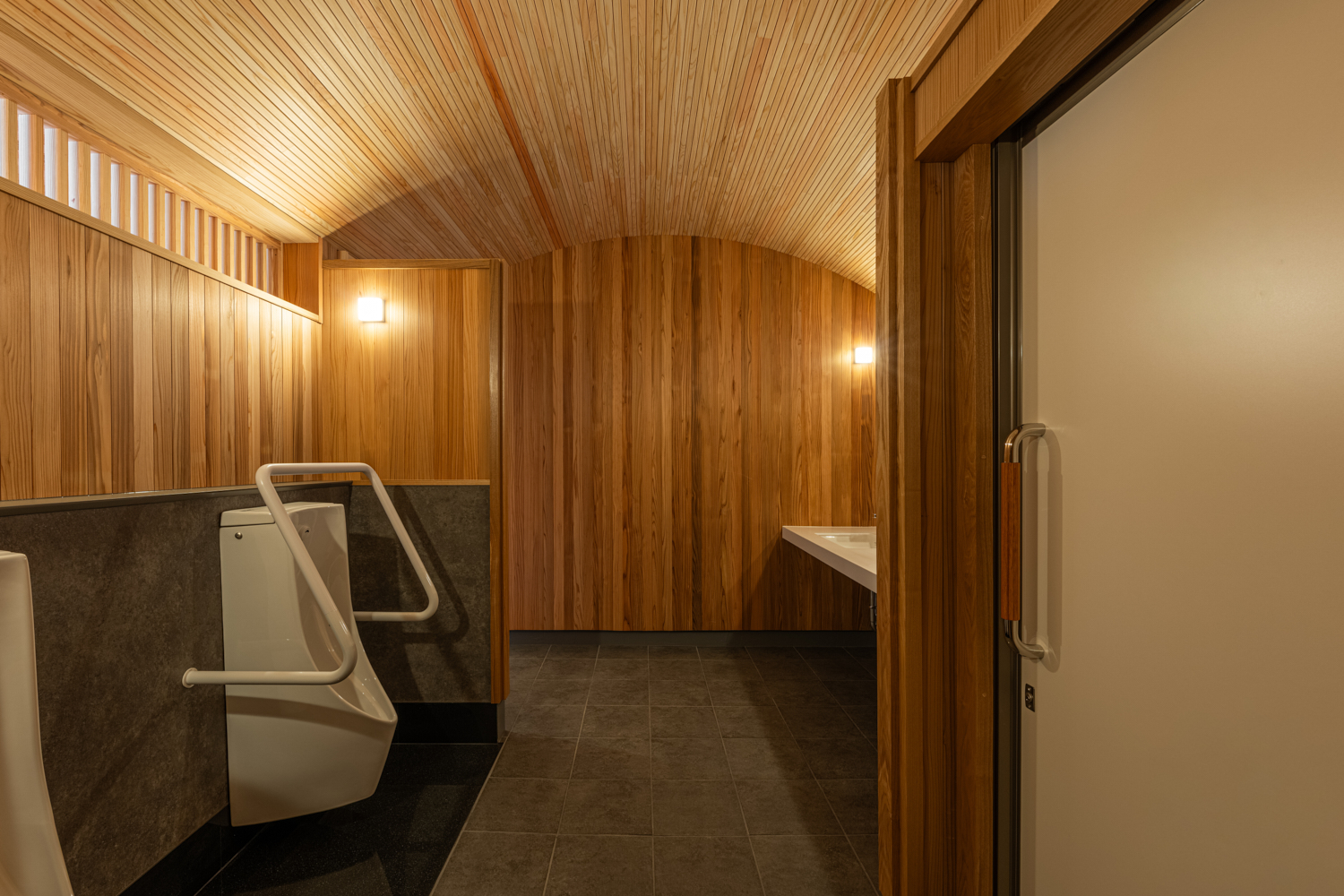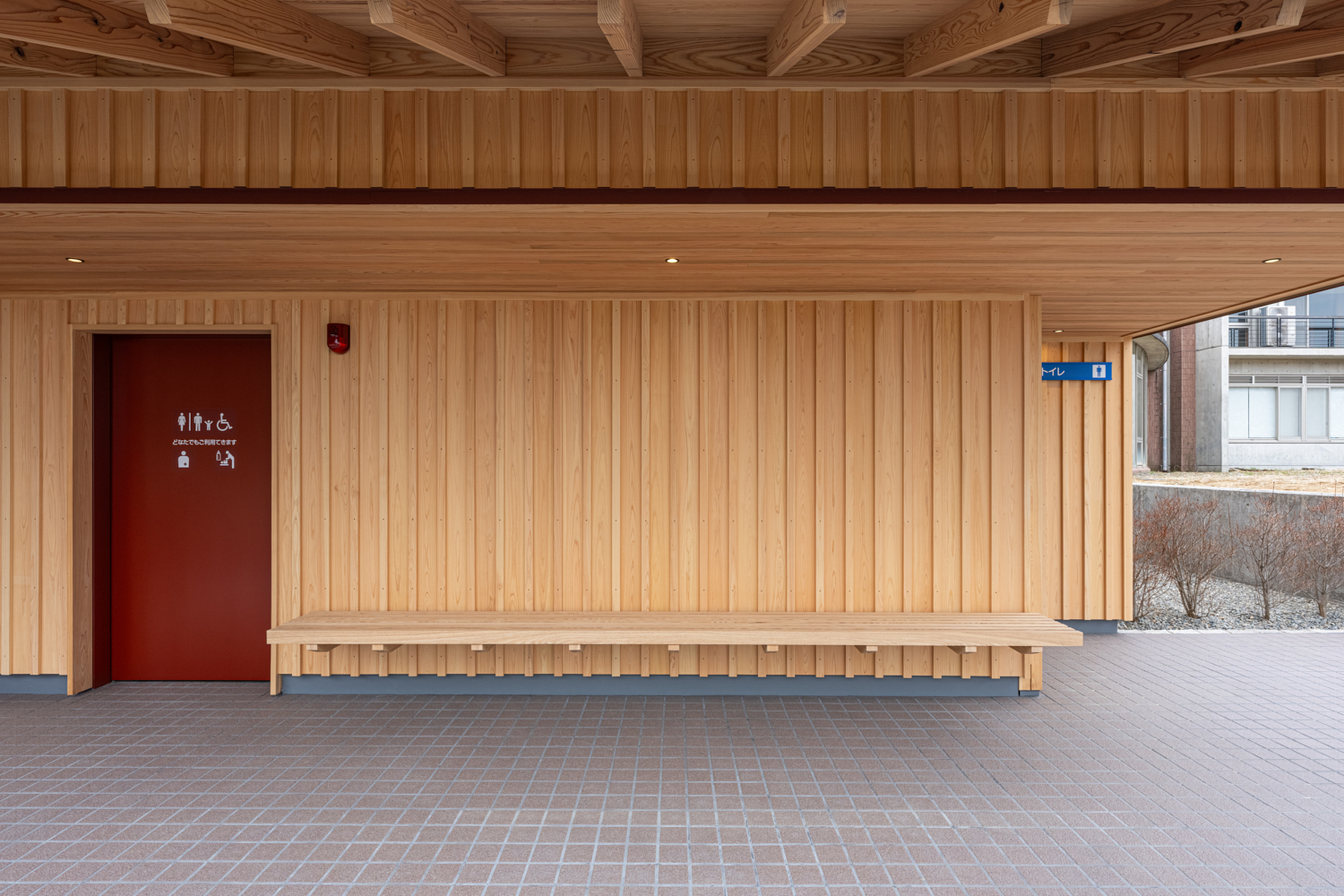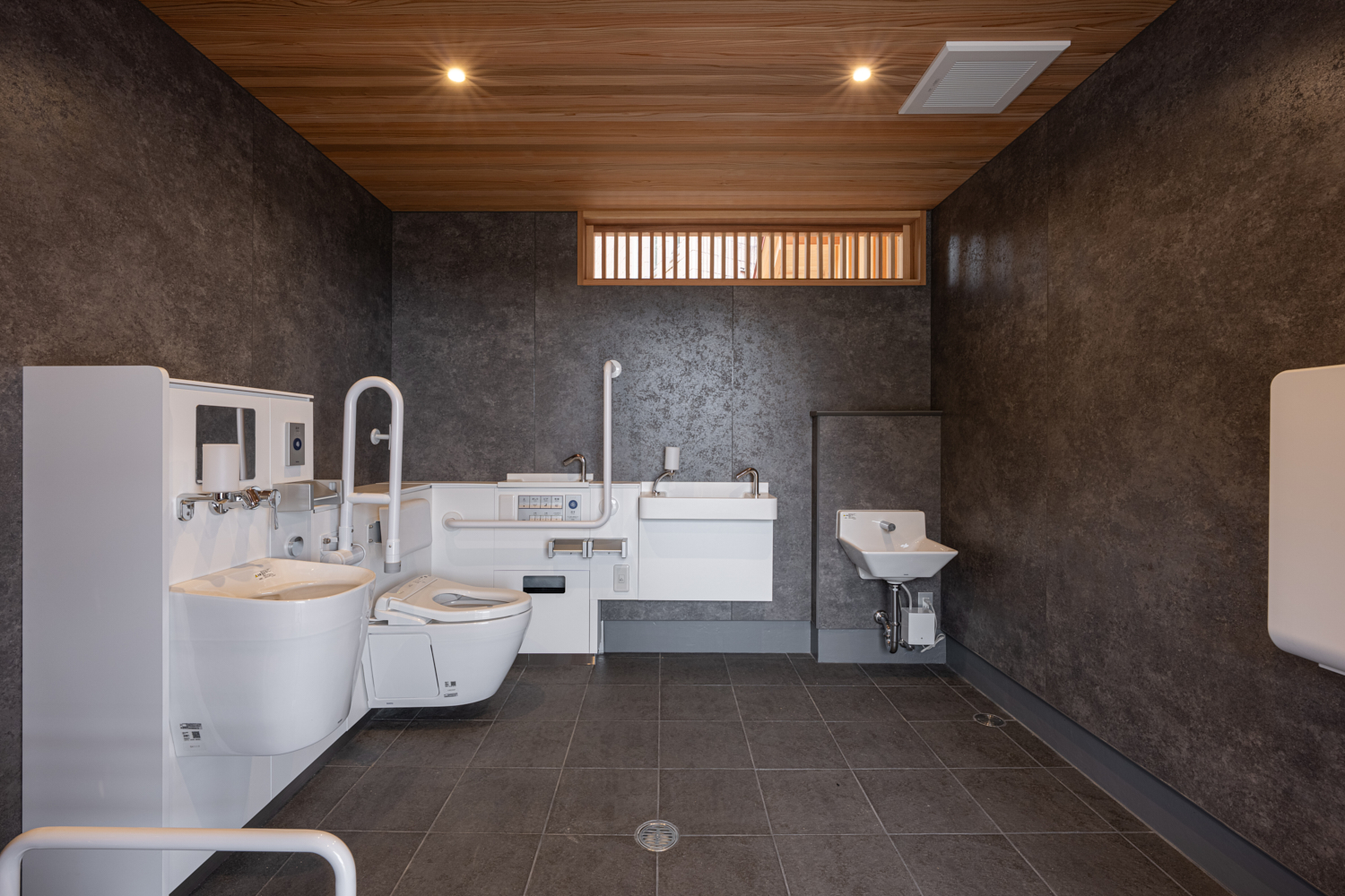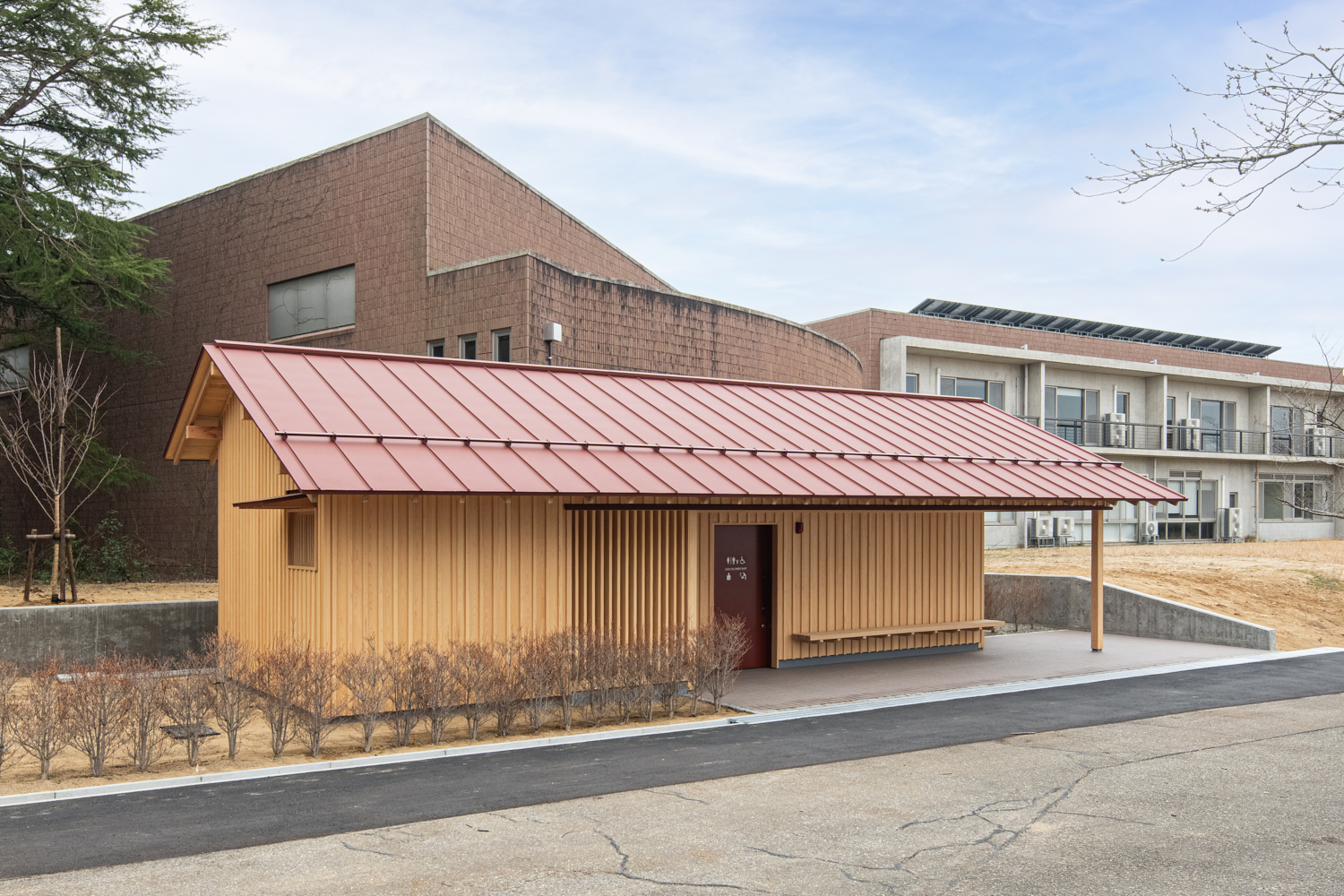市民に愛される公園。大きな芝生広間には多くの人が訪れる。その人達のためのトイレと小さな居場所。