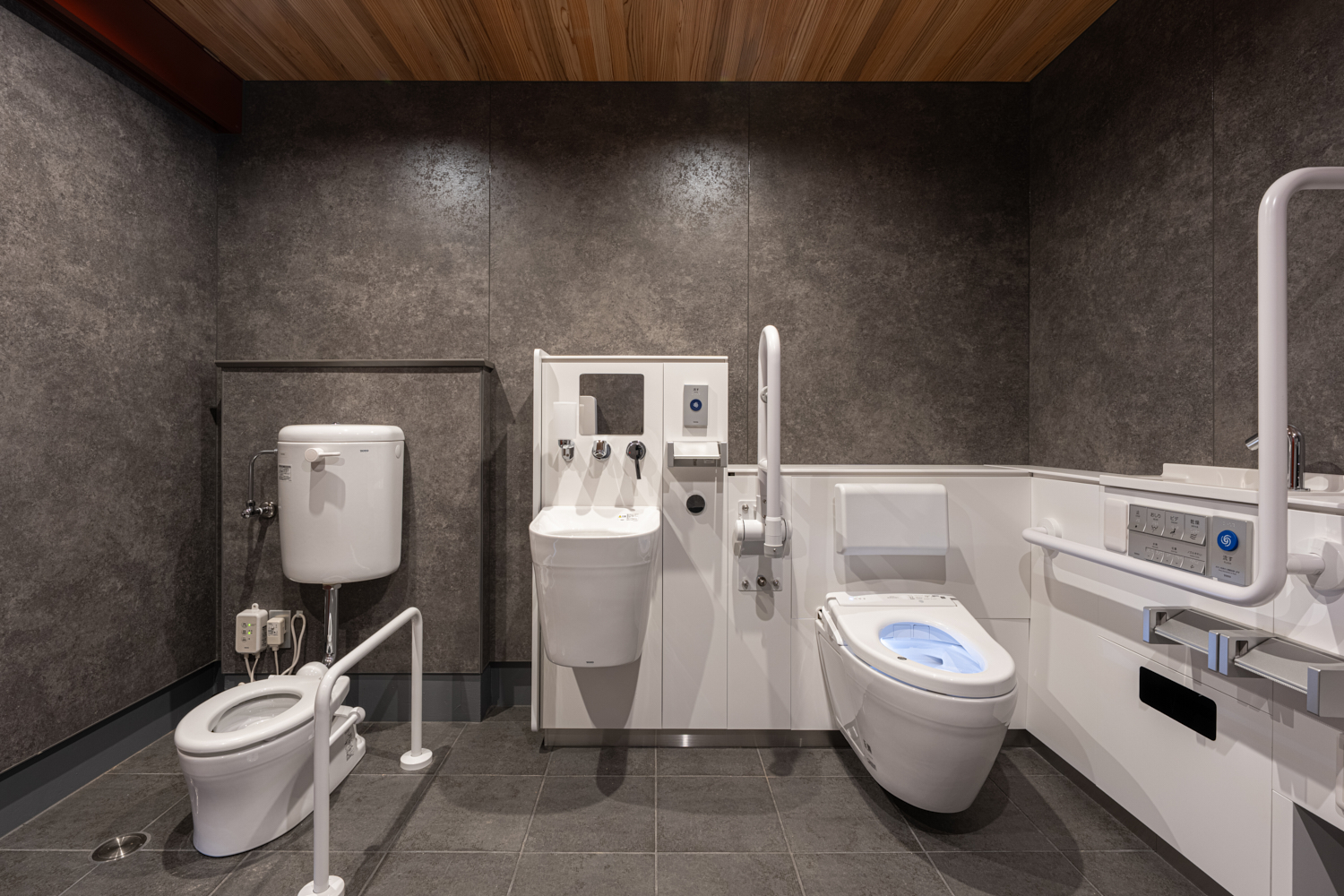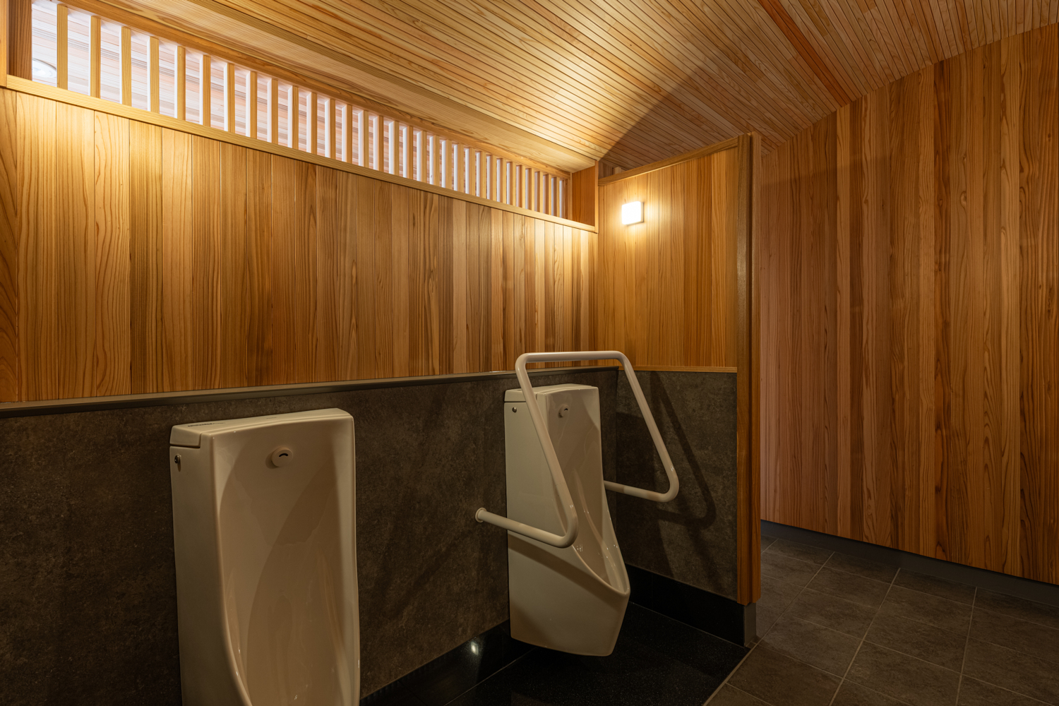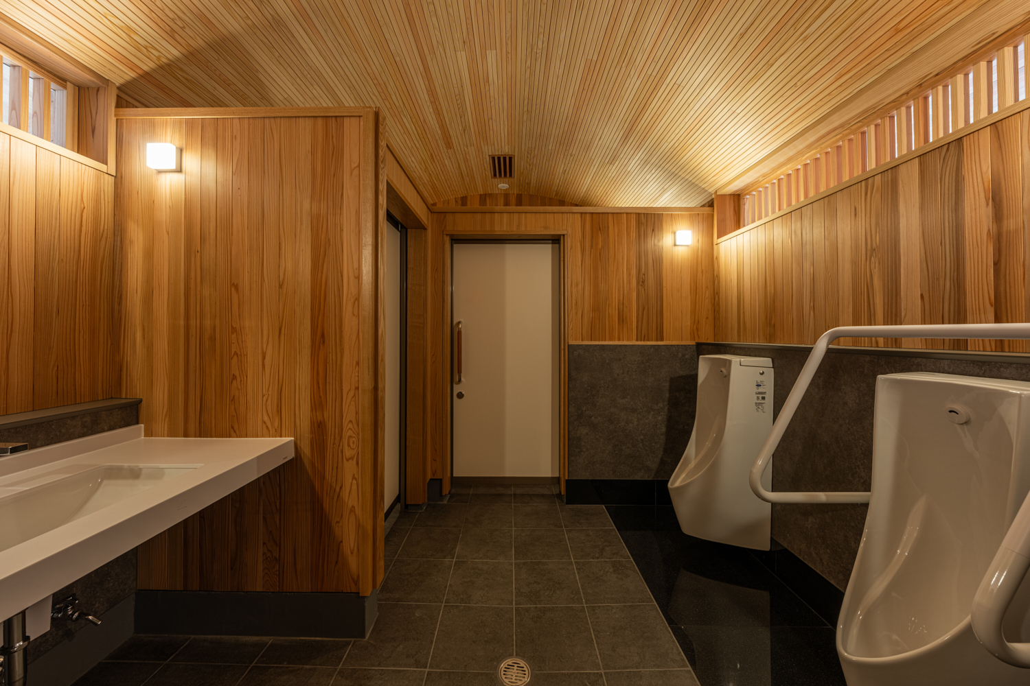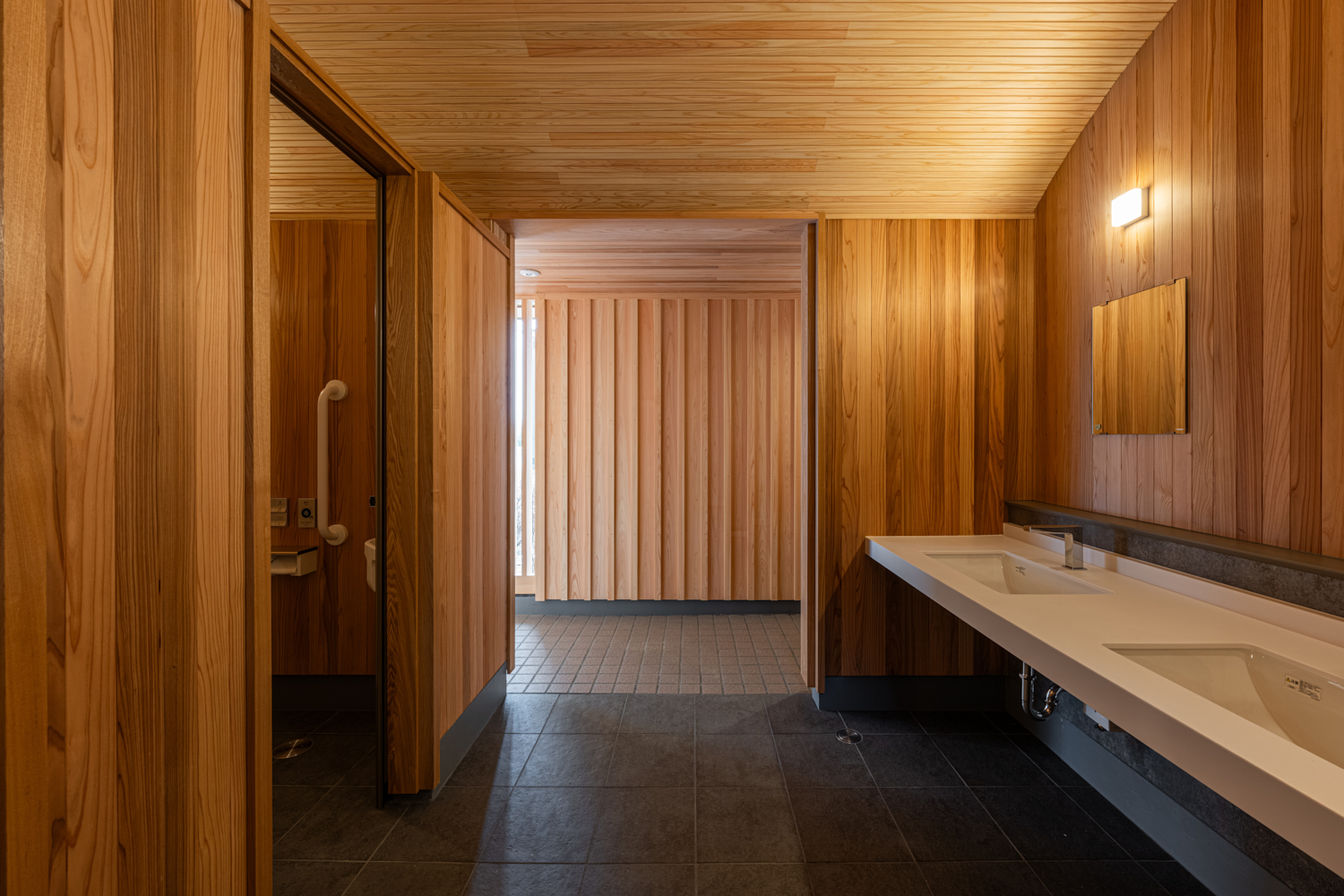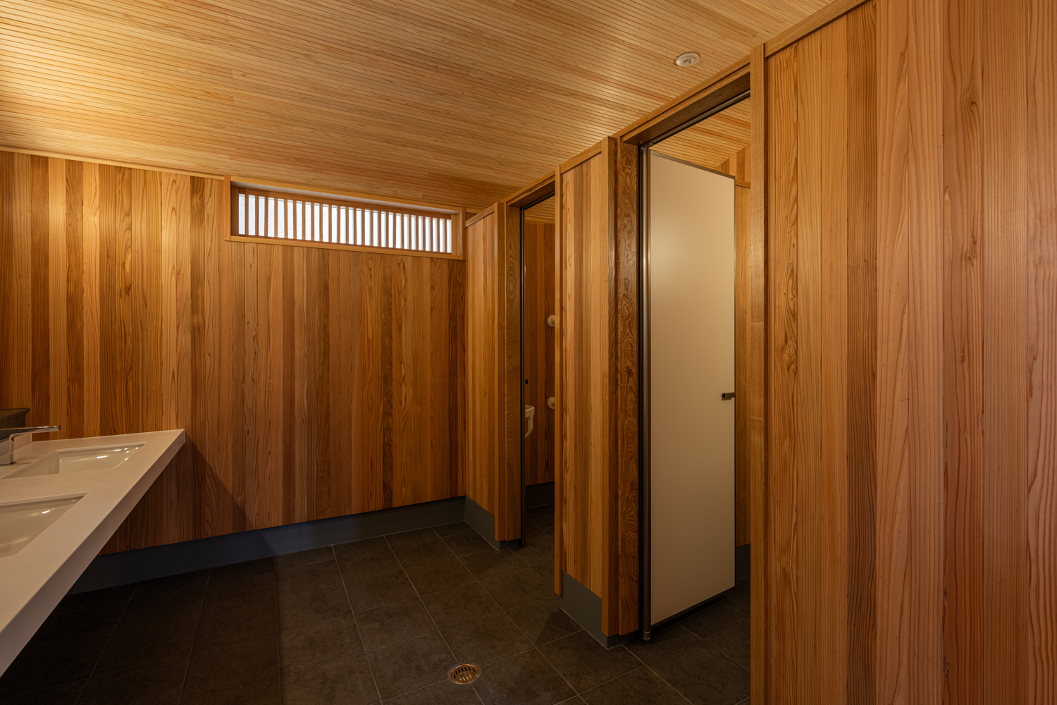 市民に愛される公園。大きな芝生広間には多くの人が訪れる。その人達のためのトイレと小さな居場所。